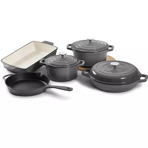 Горячая распродажа, индивидуализированная эмалированная голландская духовка, чугунная кухонная посуда, запеканка, набор кастрюль и кастрюль для приготовления супа